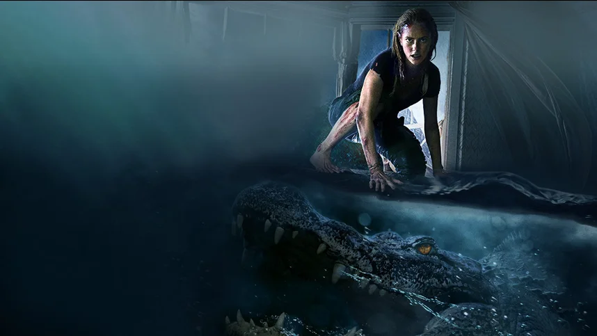 Когда Хейли пытается вытащить отца наружу, она подвергается атаке большого аллигатора, к которому, в итоге, присоединяется ещё несколько не менее крупных. Хищники блокируют Хейли и её бессознательному отцу выход на поверхность. В относительно безопасном месте, пришедший в себя Дэйв говорит Хейли, что аллигаторы, скорее всего, проникли в пределы дома через ливневый сток. Аллигаторы слишком велики, чтобы перемещаться или пролезать между труб под домом, что, не без опасности, конечно, позволяет Хейли и Дэйву маневрировать в наполняющемся водой подвале. Временно перевязав полученные в ходе столкновений с аллигаторами раны, Хейли предпринимает попытку выбраться через люк на первый этаж дома. Однако люк оказывается заблокирован мебелью. Осложнений добавляет тот факт, что телефон Хейли оказывается раздавлен одним из аллигаторов. Вскоре Хейли и Дэйв пытаются докричаться до орудующих неподалёку представителей группы мародеров, но один за другим мародёры подвергаются смертельным, без шансов на выживание атакам аллигаторов. Прибывшие к дому полицейские, также погибают под натиском опаснейших хищников.