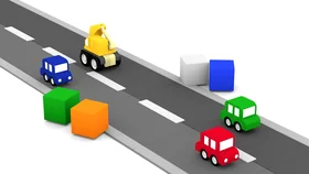 Подъемный кран и экскаватор работают на стройке. К ним присоединяются четыре машинки, спеша подвезти новые детали. Они как раз вовремя, потому что идет стройка гаража!