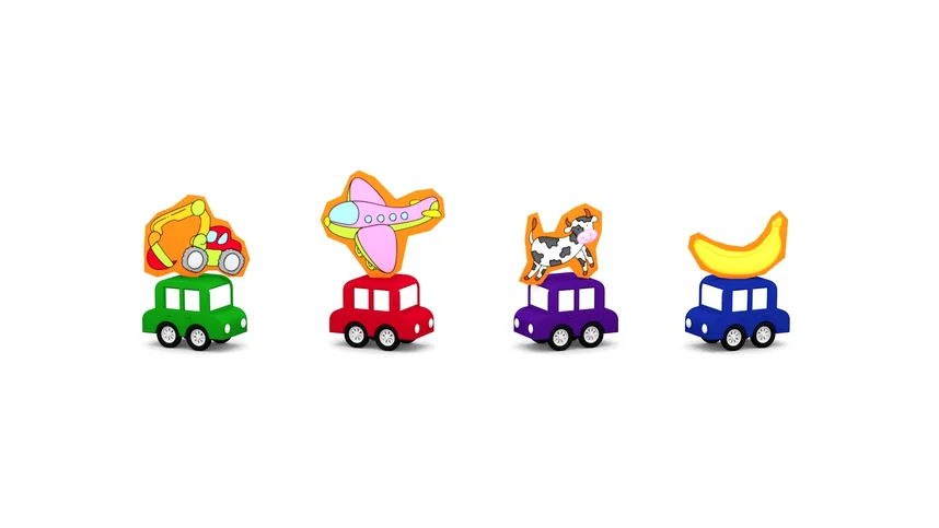 Ой, кто там под деревьями? Это свинка, лошадка, овечка, кошка и собачка. Они ждут поезд, чтобы дружно в него погрузиться, а четыре машинки везут очередную доску для пазла.
