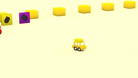 Четыре машинки несутся по дороге, но останавливаются, увидев перед собой разбросанные кубики. Игрушки необходимо убрать с дороги, но красный кубик очень тяжелый, и без помощи вертолета машинкам не справиться.