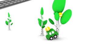 Четыре машинки едут по дороге, где их обгоняет оранжевый автомобиль. Он несется на огромной скорости, не справляется с управлением и врезается в светофор. Машинки торопятся на помощь, чтобы увезти пострадавший автомобиль в автосервис.