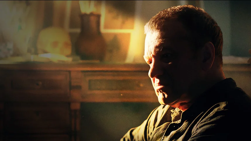 Девушка роняет рисунки со шкафа, и хозяйка дома прогоняет ее. Также она говорит ей, что Славик умер. Мужчина остается в комнате один. Он рассматривает упавшие картины и в какой-то момент начинает истерически рыдать. Супруга видит слезы мужа и понимает, что он тоже страдает. В финале фильма они лежат на полу, и муж рассказывает жене, о своем последнем визите к сыну в больницу.
