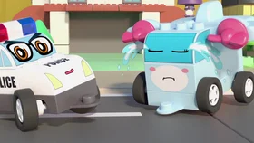 Кики пролетела между зданиями на большой скорости, притворившись, что не слышит предупреждения Младшего Крана. И приземлилась прямо на перекрестке, вызвав большую пробку. Капитан Форс наругал ее и Кики расплакалась. Хэппи попросил машинки воспользоваться ЧиЧи Силой, чтобы сделать для Кики взлетную полосу.