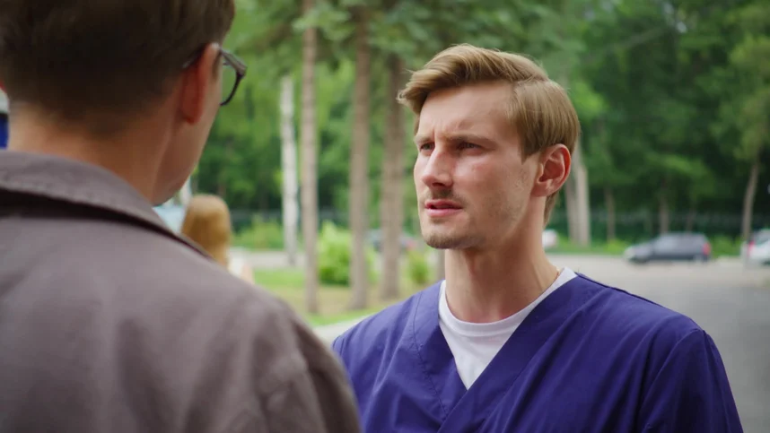 Женя разговаривает с Костей, своим сожителем. Она говорит, что, видимо, ошиблась с выбором специальности, поэтому напишет заявление об увольнении из клиники. Костя пытается ее отговорить от подобного шага, но безуспешно. А когда он узнает, что Женя забеременела от него, то сообщает любовнице, что им рано заводить ребенка.