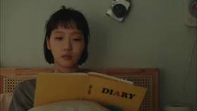 Молодая женщина (Ким Ю-ми) лежит в постели. Раздается сигнал будильника.