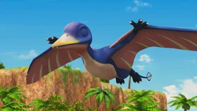 Рамфоринх мечтал стать небесным патрульным, но для этого нужно хорошее зрение, а у него зрение было плохое. Он тренировался, чтобы улучшить свой слух. Когда стая рамфоринхов ловила рыбу, он услышал странный звук. Но из-за его плохого зрения капитан проигнорировал его предостережение. В результате они врезались в стаю птерозавров, произошел несчастный случай.