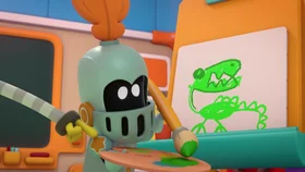 Во время урока рисования Пикси-Бот не знает, что рисовать, и совершенно поражен драконом, которого создал сэр Ричард.