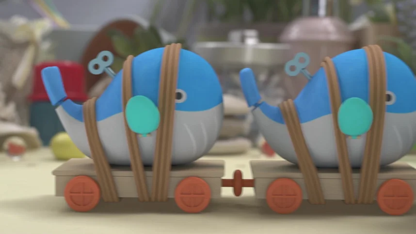 Малыши решили искупаться и мячик покидать. По дороге они встретили трех китов. Но им совсем не место на берегу, киты должны жить в воде. Киты очень тяжелые. Как же их отвезти к воде?