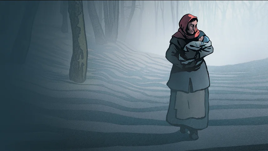 Все изменилось в один холодный зимний день. Из направляющегося в Освенцим поезда выбросили младенца. Главная героиня это замечает и решает позаботиться о столь ценном грузе. Супруг отказывается принимать еврейское дитя и опасается последствий. После долгих уговоров все же разрешает оставить, хотя жить придется в сарае.