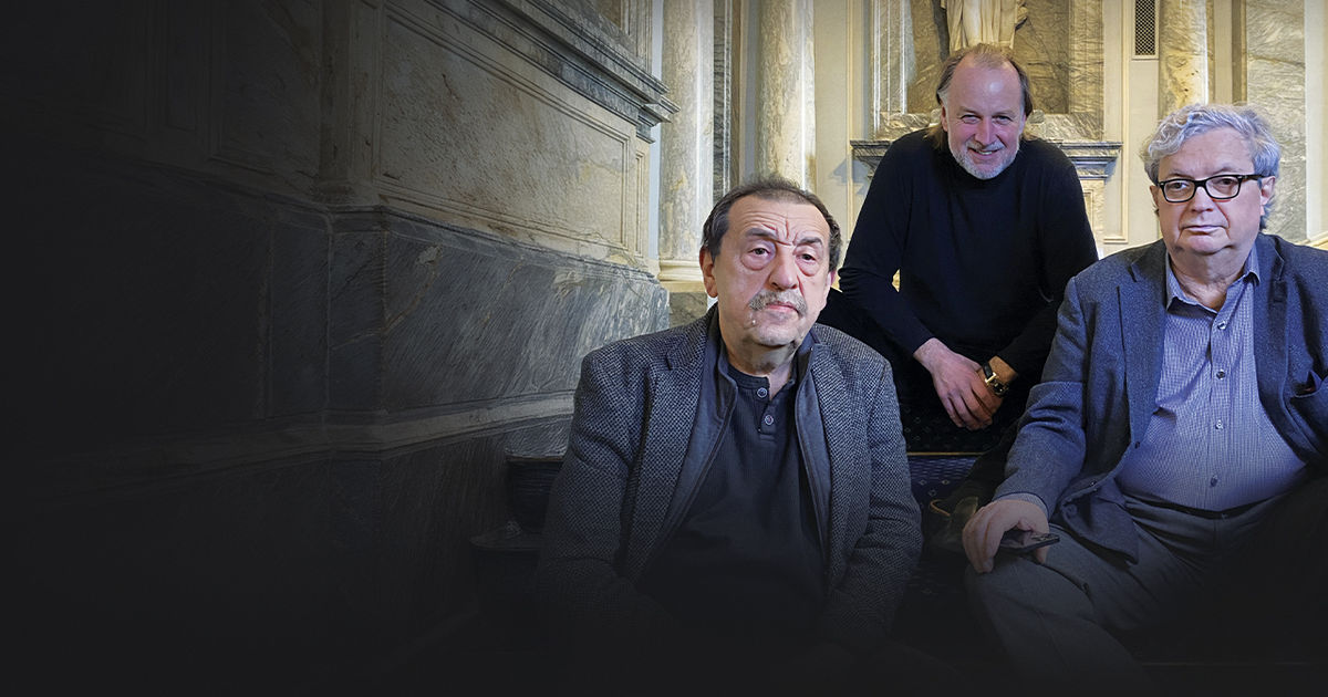 Приятели прогуливаются по двору музея возле конной статуи императора Александра III. Они вспоминают, что этот памятник был перемещен сюда в 1994 году. До этого в советское время на постаменте красовался броневичок, с которого, по преданию, вещал Ленин. Но в промежутке между броневиком и императором на этом месте побывал автомобиль марки «Форд», рядом одно время был размещен групповой авангардистский памятник на тему «Менин» Веласкеса.